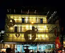 Pendant la journée, les 224 panneaux de verre qui composent les 2 800 m2[2] de sa façade agissent comme un immense miroir et les édifices voisins s'y reflètent tandis que la nuit, le cube en travertin, éclairé, est visible.