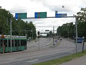 KustaaVaasantie, juste après le pont, commence le tronçon autoroutier Lahdenväylä. | |