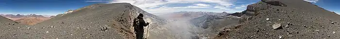 Vue du Láscar depuis la Laguna Chaxas. | ||