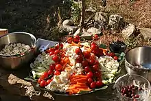 Dans le domaine de la cuisine et de la gastronomie, « légume » peut également avoir une acception plus large, désignant « tout aliment non carné et non sucré accompagnant un plat de viande ou de poisson au cours d'un repas »[1]. Ce sont en outre généralement des « fruits », au sens botanique, qui constituent l'accompagnement dans ces plats salés particuliers dits « sucrés-salés ».