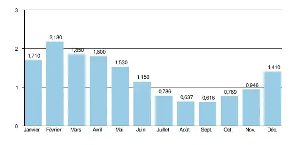 À l'étiage, le VCN3 peut chuter jusque 0,230 m3, en cas de période quinquennale sèche, soit 230 litres par seconde, ce qui est loin d'être sévère pour un petit cours d'eau de ces dimensions.