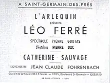 Léo Ferré chante, à partir du , au Drap d'Or ; la chanson La mauvaise graine est un des titres phares du récital[N 27].