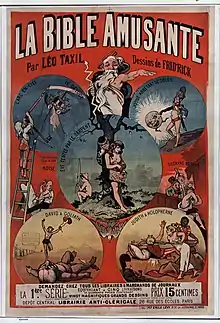 Le public, lassé, finit par ne plus considérer les dernières parutions de sa « Librairie anticléricale ». C'est alors que Léo Taxil conçoit une nouvelle mystification. En 1886, alors qu'il était excommunié, il annonce sa conversion, fait un pèlerinage à Rome et reçoit l'absolution de Léon XIII, désavouant ses travaux antérieurs[6]. Il commence alors une campagne contre les francs-maçons, dont il a été exclu dès le 1er degré pour « fraude littéraire ». Selon ses dires, il faisait partie de la loge Le temple des amis de l'honneur français[7]. Dès lors, il se lance dans une violente carrière antimaçonnique, et publie des ouvrages exactement dans la même veine que ses précédents anticléricaux, mais dirigés cette fois contre les francs-maçons, qui sont à leur tour accusés des pires déviances sexuelles.