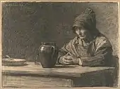- Les Dentellières des Vosges, 1888, fusain avec rehauts de pastels sec noir sur papier vergé ivoire doublés d'une feuille de papier vélin crème, 53,7 x 62,6 cm.