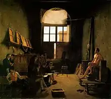 - L’intérieur de l’atelier de David au Collège des Quatre-Nations, Paris (The Interior of David’s Studio at the Collège des Quatre-Nations, Paris), huile sur toile, 87 × 100,3 cm, 1814-1817 (inv. 1995.8)[9].