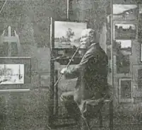 Portrait photographique de Léon Simon dans son atelier. - 1867 - Salon de Paris - Œuvre exposée : Forêt de Waldeck.
