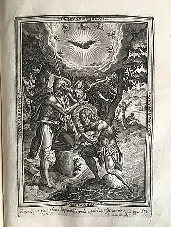 Gravure du Baptême du Christ realissé en 1603 et publiée par Jean Le Clerc à Paris- 144 vignettes constituant les portraits et constituant la Chronologie collée dans l'ouvrage