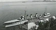 Le contre-torpilleur Léopard au mouillage, le . | |