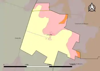Par ailleurs, le sol du territoire communal peut faire l'objet de mouvements de terrain liés à la sécheresse. Le phénomène de retrait-gonflement des argiles est la conséquence d'un changement d'humidité des sols argileux. Les argiles sont capables de fixer l'eau disponible mais aussi de la perdre en se rétractant en cas de sécheresse[35]. Ce phénomène peut provoquer des dégâts très importants sur les constructions (fissures, déformations des ouvertures) pouvant rendre inhabitables certains locaux. Celui-ci a particulièrement affecté le Loiret après la canicule de l'été 2003. La quasi-totalité du territoire de la commune est soumise à un aléa « faible » face à ce risque, selon l'échelle définie par le Bureau de recherches géologiques et minières (BRGM)[36].