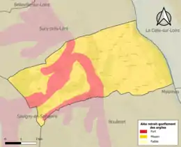 La commune est vulnérable au risque de mouvements de terrains constitué principalement du retrait-gonflement des sols argileux[19]. Cet aléa est susceptible d'engendrer des dommages importants aux bâtiments en cas d’alternance de périodes de sécheresse et de pluie. 99,9 % de la superficie communale est en aléa moyen ou fort (90 % au niveau départemental et 48,5 % au niveau national). Sur les 729 bâtiments dénombrés sur la commune en 2019, 729 sont en aléa moyen ou fort, soit 100 %, à comparer aux 83 % au niveau départemental et 54 % au niveau national. Une cartographie de l'exposition du territoire national au retrait gonflement des sols argileux est disponible sur le site du BRGM[20],[Carte 2].