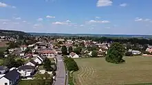 L'occupation des sols de la commune, telle qu'elle ressort de la base de données européenne d’occupation biophysique des sols Corine Land Cover (CLC), est marquée par l'importance des forêts et milieux semi-naturels (51,3 % en 2018), une proportion identique à celle de 1990 (51,3 %). La répartition détaillée en 2018 est la suivante : forêts (48,3 %), terres arables (14,7 %), eaux continentales[Note 3] (9,4 %), zones urbanisées (9 %), zones agricoles hétérogènes (8 %), prairies (4,3 %), milieux à végétation arbustive et/ou herbacée (3 %), espaces verts artificialisés, non agricoles (2,1 %), zones industrielles ou commerciales et réseaux de communication (1,2 %)[16]. L'évolution de l’occupation des sols de la commune et de ses infrastructures peut être observée sur les différentes représentations cartographiques du territoire : la carte de Cassini (XVIIIe siècle), la carte d'état-major (1820-1866) et les cartes ou photos aériennes de l'IGN pour la période actuelle (1950 à aujourd'hui)[Carte 1].