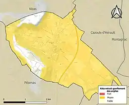 Le retrait-gonflement des sols argileux est susceptible d'engendrer des dommages importants aux bâtiments en cas d’alternance de périodes de sécheresse et de pluie. 88,4 % de la superficie communale est en aléa moyen ou fort (59,3 % au niveau départemental et 48,5 % au niveau national). Sur les 680 bâtiments dénombrés sur la commune en 2019, 679 sont en aléa moyen ou fort, soit 100 %, à comparer aux 85 % au niveau départemental et 54 % au niveau national. Une cartographie de l'exposition du territoire national au retrait gonflement des sols argileux est disponible sur le site du BRGM[19],[Carte 2].