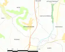 Lézignan-la-Cèbe est limitrophe avec quatre communes de l'Hérault[2].