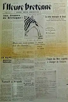 L'Heure bretonne est un journal hebdomadaire nationaliste breton qui paraît en format in-plano de juillet 1940 à juin 1944 pendant l'occupation allemande en Bretagne.
