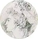 La jeune femme, « au front haut et doucement arrondi, au nez fin et légèrement relevé, aux lèvres charnues et au menton délicatement saillant »[2], est vue par son profil gauche. Ses cheveux châtains sont arrangés en boucles tenues en haut et en arrière par un ruban rose aux extrémités flottantes, tandis que deux petites boucles en tire-bouchon encadrent son oreille.