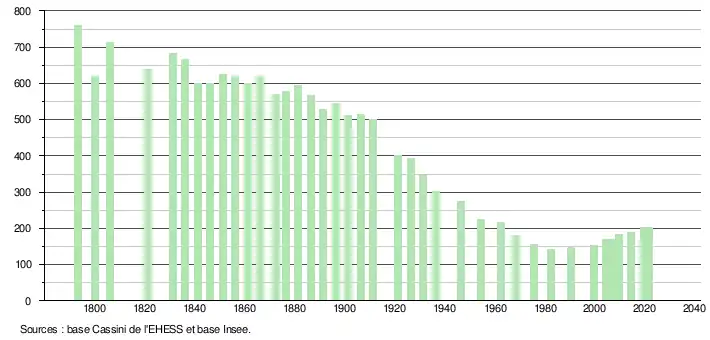 - Population municipale légale en vigueur au 1er janvier 2024, millésimée 2021, définie dans les limites territoriales en vigueur au 1er janvier 2023, date de référence statistique : 1er janvier 2021.