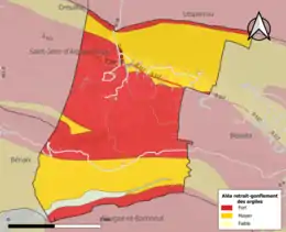Les mouvements de terrains susceptibles de se produire sur la commune sont soit des chutes de blocs, soit des glissements de terrains, soit des effondrements liés à des cavités souterraines, soit des mouvements liés au retrait-gonflement des argiles. Près de 50 % de la superficie de l’Ariège est concernée par l'aléa retrait-gonflement des argiles, dont la commune de l'Aiguillon[35]. L'inventaire national des cavités souterraines permet par ailleurs de localiser celles situées sur la commune[36].