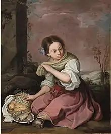Jeune paysanne avec des fruits et des poissons, toile de Bartolomé Esteban Murillo, v. 1670.