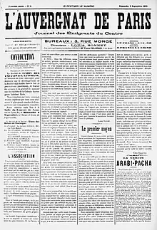 , premier numéro de L'Auvergnat de Paris, journal des émigrants du Centre : « L'Auvergnat de Paris est né, et il est né viable. C'est tout armé qu'il est sorti d'un cerveau têtu d'Auvergnat ». Celui d'un Cantalien, né en 1856, à Aurillac : Louis Bonnet est le fils d'un journaliste-imprimeur de la capitale géraldienne, qui comme beaucoup de ses compatriotes, "monte" à Paris pour gagner sa vie. Se lançant dans le journalisme politique, il a, à 26 ans, l'intuition géniale de fédérer le petit peuple auvergnat de Paris, de cette fin du XIXe siècle, les bougnats. Avec comme cri de ralliement : "Tout pour l'Auvergne". Natifs des hautes terres aux confins du Cantal, de l'Aveyron et de la Lozère, d'origine paysanne, avec peu d'instruction et la foi catholique, ils sont assez différents de l'intellectuel citadin et du politicien anticlérical qu'est Louis Bonnet. Mais un même amour de la terre nourricière du Massif central les réunit. Le journal, paraissant tous les vendredis, comporte quatre pages et le lecteur peut découvrir la politique, la littérature, les faits divers, sous la plume de personnalités auvergnates prestigieuses, comme Jules Vallès. Pour un prix d'abonnement à l'année de 3 francs. En 1900, le journal se présente sur quatre pages et il est vendu 15 centimes.