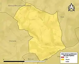 Le retrait-gonflement des sols argileux est susceptible d'engendrer des dommages importants aux bâtiments en cas d’alternance de périodes de sécheresse et de pluie[39]. La totalité de la commune est en aléa moyen ou fort (59 % au niveau départemental et 48,5 % au niveau national)[Carte 5]. Depuis le , en application de la loi ELAN, différentes contraintes s'imposent aux vendeurs, maîtres d'ouvrages ou constructeurs de biens situés dans une zone classée en aléa moyen ou fort[Note 8],[40].