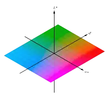 L'espace chromatique L*a*b* CIE 1976, généralement nommé CIELAB, est un espace de couleur particulièrement utilisé pour la caractérisation des couleurs de surface. Trois grandeurs caractérisent les couleurs : la clarté L* dérive de la luminance de la surface ; les deux paramètres a* et b* expriment l'écart de la couleur par rapport à celle d'une surface grise de même clarté. L'existence d'une surface grise, non colorée, achromatique, implique d'indiquer explicitement la composition de la lumière qui éclaire la surface colorée. Cet illuminant est souvent la lumière du jour normalisée D65.