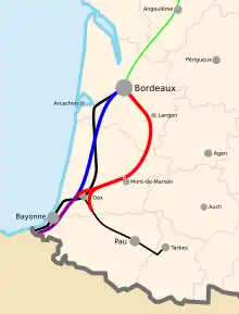 | Villes desservies | Bordeaux, Mont-de-Marsan, Dax, Bayonne | |