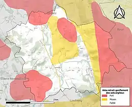 Le retrait-gonflement des sols argileux est susceptible d'engendrer des dommages importants aux bâtiments en cas d’alternance de périodes de sécheresse et de pluie[28]. 49,4 % de la superficie communale est en aléa moyen ou fort (59 % au niveau départemental et 48,5 % au niveau national)[Carte 4]. Depuis le , en application de la loi ELAN, différentes contraintes s'imposent aux vendeurs, maîtres d'ouvrages ou constructeurs de biens situés dans une zone classée en aléa moyen ou fort[Note 7],[29].