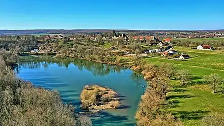 Le village est installé sur une barre rocheuse, d'où son nom, qui a contraint l'Ognon à faire un méandre pour contourner l'obstacle en entourant ainsi le village.