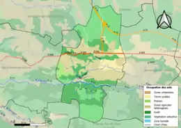 L'occupation des sols de la commune, telle qu'elle ressort de la base de données européenne d’occupation biophysique des sols Corine Land Cover (CLC), est marquée par l'importance des forêts et milieux semi-naturels (64,2 % en 2018), néanmoins en diminution par rapport à 1990 (64,2 %).
