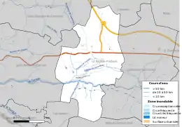 Le risque de transport de matières dangereuses sur la commune est lié à sa traversée par des infrastructures routières et ferroviaires importantes et la présence d'une canalisation de transport de gaz. Un accident se produisant sur de telles infrastructures est en effet susceptible d’avoir des effets graves au bâti ou aux personnes jusqu’à 350 m, selon la nature du matériau transporté. Des dispositions d’urbanisme peuvent être préconisées en conséquence[44].