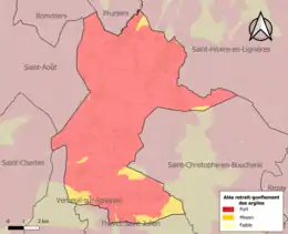 Le retrait-gonflement des sols argileux est susceptible d'engendrer des dommages importants aux bâtiments en cas d’alternance de périodes de sécheresse et de pluie. La totalité de la commune est en aléa moyen ou fort (84,7 % au niveau départemental et 48,5 % au niveau national). Sur les 321 bâtiments dénombrés sur la commune en 2019, 321 sont en aléa moyen ou fort, soit 100 %, à comparer aux 86 % au niveau départemental et 54 % au niveau national. Une cartographie de l'exposition du territoire national au retrait gonflement des sols argileux est disponible sur le site du BRGM[22],[23].