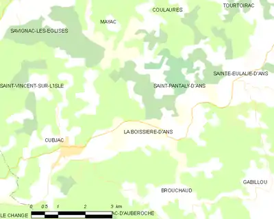 En 2016, année précédant la création de la commune nouvelle de Cubjac-Auvézère-Val d'Ans, La Boissière-d'Ans était limitrophe de cinq autres communes.