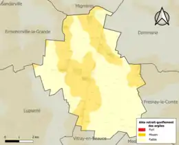 Le retrait-gonflement des sols argileux est susceptible d'engendrer des dommages importants aux bâtiments en cas d’alternance de périodes de sécheresse et de pluie. 39,3 % de la superficie communale est en aléa moyen ou fort (52,8 % au niveau départemental et 48,5 % au niveau national). Sur les 305 bâtiments dénombrés sur la commune en 2019, 203 sont en aléa moyen ou fort, soit 67 %, à comparer aux 70 % au niveau départemental et 54 % au niveau national. Une cartographie de l'exposition du territoire national au retrait gonflement des sols argileux est disponible sur le site du BRGM[16],[Carte 2].