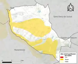 Le retrait-gonflement des sols argileux est susceptible d'engendrer des dommages importants aux bâtiments en cas d’alternance de périodes de sécheresse et de pluie. 43 % de la superficie communale est en aléa moyen ou fort (84,7 % au niveau départemental et 48,5 % au niveau national). Sur les 110 bâtiments dénombrés sur la commune en 2019, 57 sont en aléa moyen ou fort, soit 52 %, à comparer aux 86 % au niveau départemental et 54 % au niveau national. Une cartographie de l'exposition du territoire national au retrait gonflement des sols argileux est disponible sur le site du BRGM[21],[22].