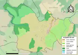L'occupation des sols de la commune, telle qu'elle ressort de la base de données européenne d’occupation biophysique des sols Corine Land Cover (CLC), est marquée par l'importance des territoires agricoles (78,9 % en 2018), en augmentation par rapport à 1990 (63,7 %). La répartition détaillée en 2018 est la suivante : zones agricoles hétérogènes (52 %), prairies (26,6 %), forêts (18,9 %), zones urbanisées (2,2 %), terres arables (0,3 %)[21].