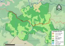 L'occupation des sols de la commune, telle qu'elle ressort de la base de données européenne d’occupation biophysique des sols Corine Land Cover (CLC), est marquée par l'importance des forêts et milieux semi-naturels (59,7 % en 2018), une proportion sensiblement équivalente à celle de 1990 (59 %). La répartition détaillée en 2018 est la suivante : forêts (59,7 %), prairies (36,4 %), zones agricoles hétérogènes (3,9 %)[29].