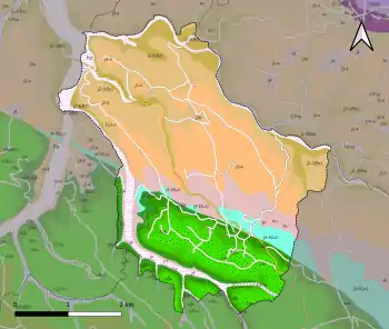 La superficie cadastrale de la commune publiée par l'Insee, qui sert de référence dans toutes les statistiques, est de 14,85 km2[5],[10],[Note 2]. La superficie géographique, issue de la BD Topo, composante du Référentiel à grande échelle produit par l'IGN, est quant à elle de 15,11 km2[3].