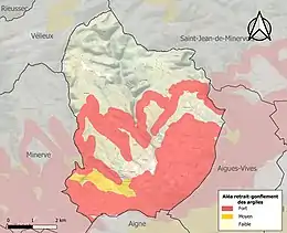 Le retrait-gonflement des sols argileux est susceptible d'engendrer des dommages importants aux bâtiments en cas d’alternance de périodes de sécheresse et de pluie. 50,9 % de la superficie communale est en aléa moyen ou fort (59,3 % au niveau départemental et 48,5 % au niveau national). Sur les 245 bâtiments dénombrés sur la commune en 2019, 213 sont en aléa moyen ou fort, soit 87 %, à comparer aux 85 % au niveau départemental et 54 % au niveau national. Une cartographie de l'exposition du territoire national au retrait gonflement des sols argileux est disponible sur le site du BRGM[27],[Carte 2].