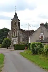- « L’église, vue prise de la route de Beaumont (carte postale ancienne) », Archives départementales de la Nièvre.