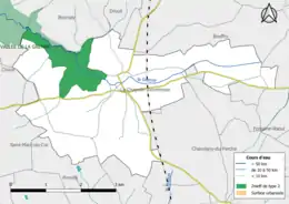 La Grenne traverse la commune en s'écoulant de l'est vers l'ouest. D'une longueur totale de 28,2 km, elle prend sa source dans la commune de La Chapelle-Vicomtesse (Loir-et-Cher) et se jette dans la Braye à Sargé-sur-Braye (Loir-et-Cher), après avoir traversé 7 communes[14]. Sur le plan piscicole, ce cours d'eau est classé en première catégorie, où le peuplement piscicole dominant est constitué de salmonidés (truite, omble chevalier, ombre commun, huchon)[15].