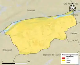 Le retrait-gonflement des sols argileux est susceptible d'engendrer des dommages importants aux bâtiments en cas d’alternance de périodes de sécheresse et de pluie. 96,5 % de la superficie communale est en aléa moyen ou fort (90,2 % au niveau départemental et 48,5 % au niveau national). Sur les 294 bâtiments dénombrés sur la commune en 2019, 294 sont en aléa moyen ou fort, soit 100 %, à comparer aux 91 % au niveau départemental et 54 % au niveau national. Une cartographie de l'exposition du territoire national au retrait gonflement des sols argileux est disponible sur le site du BRGM[26],[27].