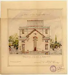 Construite en 1925 et associée à la maison du peuple, la salle de la Cité naît du mouvement ouvrier du XIXe siècle dans l'esprit des bourses du travail[4]. Elle répond à un projet social et aux besoins de fonctionnement des syndicats en accueillant les réunions publiques. Elle est un haut lieu de la démocratisation de la culture et des loisirs : son architecte, Emmanuel Le Ray[5], dote la salle d'une cabine de projection et d'une scène. Le peintre Camille Godet est chargé de la décoration. Il réalise pendant la construction de nombreux croquis des ouvriers sur le chantier qu'il retranscrit dans une fresque à l'huile sur toile.