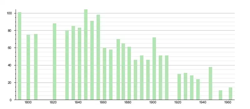 L’école, qui comptait 16 élèves en 1910, n’en a plus que deux en 1928 : l’administration prend la décision de la fermer. Elle rouvre en 1934 pour deux élèves (neuf en 1944)[11].