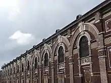 L'ensemble des bâtiments représentent environ 12 000 m2. La structure générale en béton armé est une nouveauté à l'époque de la construction. Les 244 mètres de façades qui sont en front-à-rues sont en briques, rythmées de briques vernissées et de pierres blanches. Le bâtiment compte deux hangars ainsi qu'un espace de laboratoires et une habitation pour le directeur. Le tout est organisé autour d'une rue en U, couverte sur la première section par un toit de verre sur une structure métallique.