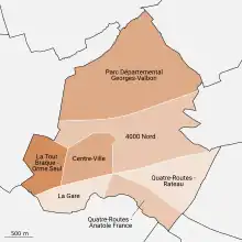 - Durant la période 2000-2006, la Ville reçoit 11,5 millions d'euros de crédits européens. « Evaluation à mi-parcours du DOCUP objectif 2 », Préfecture de Région Île-de-France, (consulté le ).