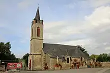 - Église Sainte-Croix. On peut voir à l'intérieur les pierres tombales jumelles avec les gisants, de la fin du XVe siècle, des seigneurs du manoir du Broutay[21].