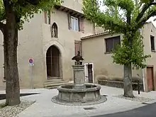 - Fontaine située devant l'église Saint-Jacques. Construite en 1886, cette fontaine porte sur sa colonne un coq en fonte. Une face de la colonne porte l'inscription R.F 1886, sur une autre face est gravée la composition du conseil municipal de La Digne-d'Aval en 1886 : GUITTARD Maire, VIVES Adj, VENE Henri, TOURNIé Louis, TRAUQUE François, DENAT Guilhaume, FAURE Barthélèmy, BAUBé Michel, BONNERY François, BONNERY Baptiste.