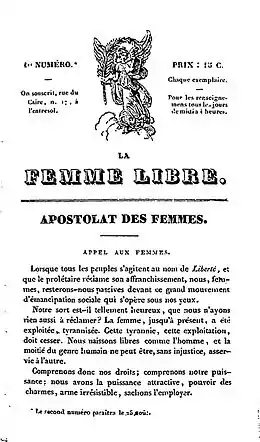 La Femme libre, est le premier titre de la « brochure » fondée en 1832[1] par Marie-Reine Guindorf et Jeanne-Désirée Véret. Il s'agit du premier[2] journal féministe français, réalisé et publié uniquement par des femmes[1].