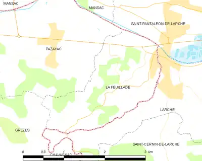 La Feuillade est une commune rurale, car elle fait partie des communes peu ou très peu denses, au sens de la grille communale de densité de l'Insee[Note 3],[31],[32],[33]. Elle appartient à l'unité urbaine de Brive-la-Gaillarde, une agglomération inter-départementale regroupant 12 communes[34] et 75 956 habitants en 2017, dont elle est une commune de la banlieue[35],[36].