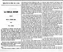 « Nous recommandons une œuvre nouvelle de M. Émile Zola, "La Fortune des Rougon", en vente à la Librairie internationale. C'est un roman, mais un roman politique, qui ne sera pas trop déplacé en ces temps d'indifférence littéraire. L'auteur raconte le coup d'État en province. Il montre les violences de ce coup de main qu'on voudrait aujourd'hui renouveler. Le drame qu'il a choisi est poignant et donne à réfléchir. »